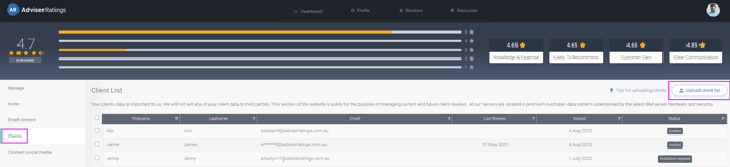 Your Adviser Portal allows you to easily invite your clients to review you in bulk or singularly.