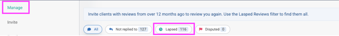 - You can find step-by-step instructions on how to re-invite clients to review you here.